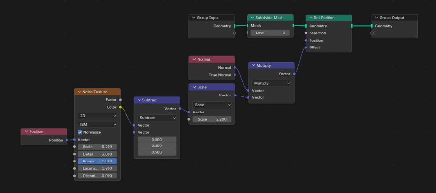 I also wanted to push my understanding of Blender’s increasingly sophisticated geometry nodes functionality, and more broadly improve my ability to develop within node-based environments. In the past I’ve been hostile to node-based programming, thinking it was a poor substitute for writing code directly in an IDE. However as time has gone on, and I’ve experienced working within teams where changes with time and people cause programs to atrophy, I’ve come to appreciate the benefits. Node-based programming can provide a great API to maintain backward compatibility while allowing feature development, bug fixes and general improvements.